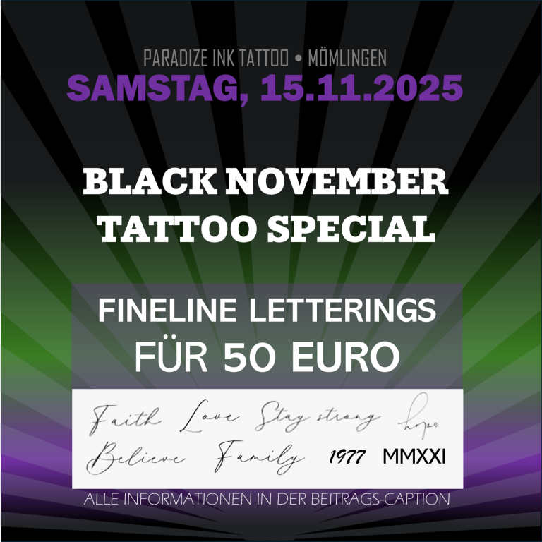 Am Samstag, den 15. November, findet bei uns im Paradize INK Mömlingen ein ganz besonderes Event statt: das BLACK NOVEMBER TATTOO SPECIAL...