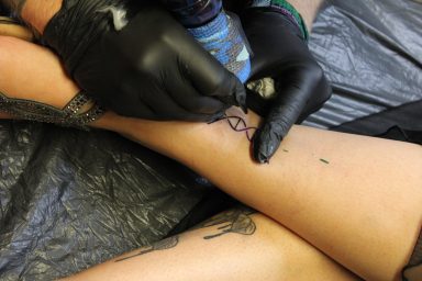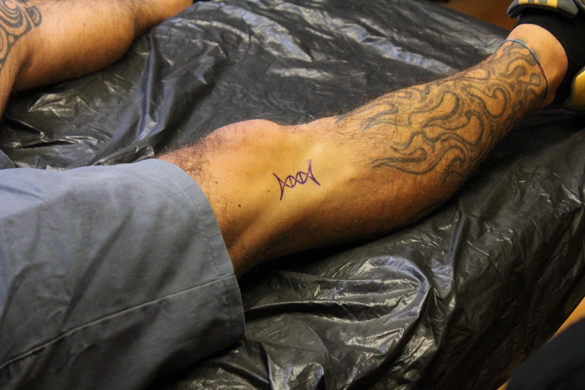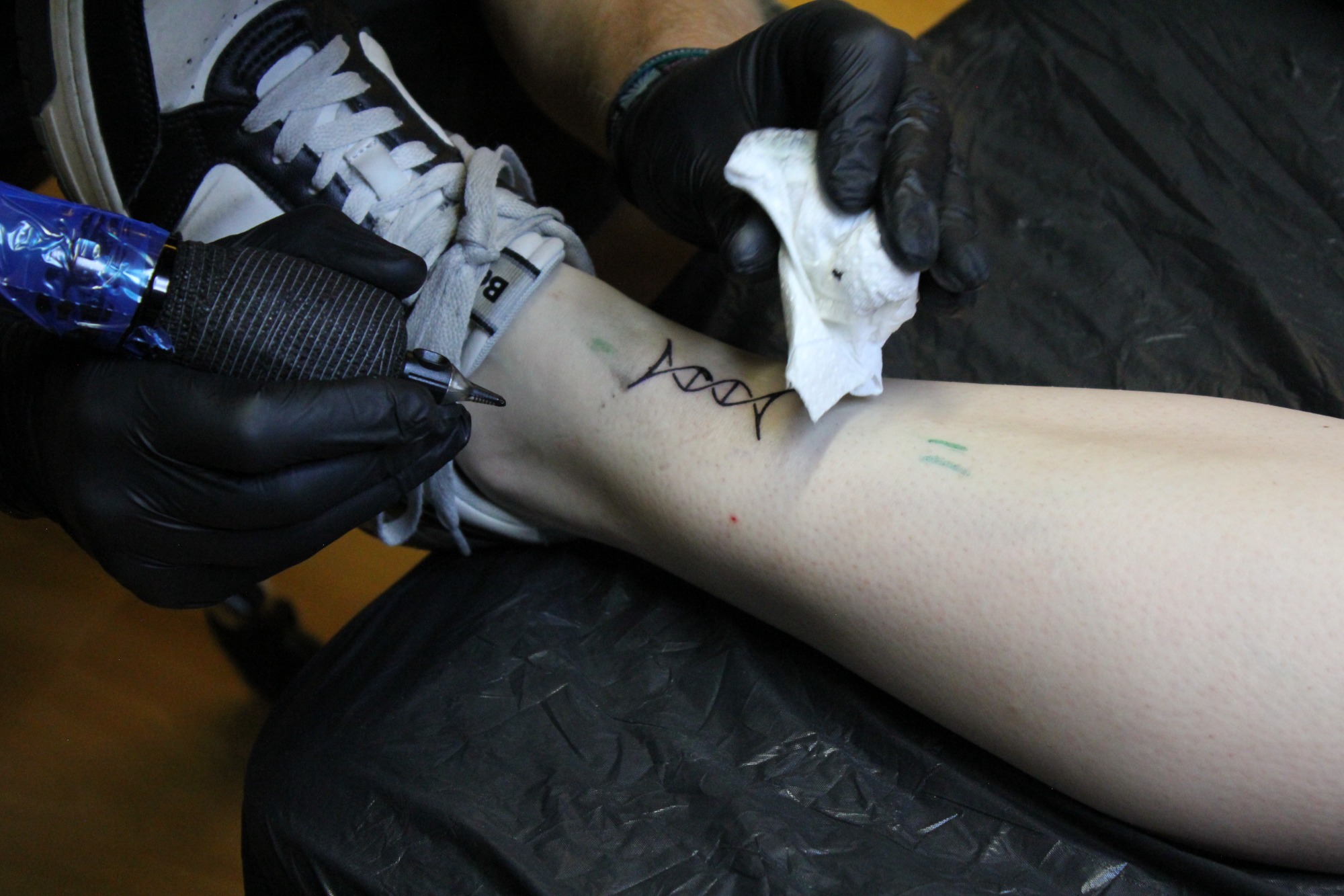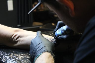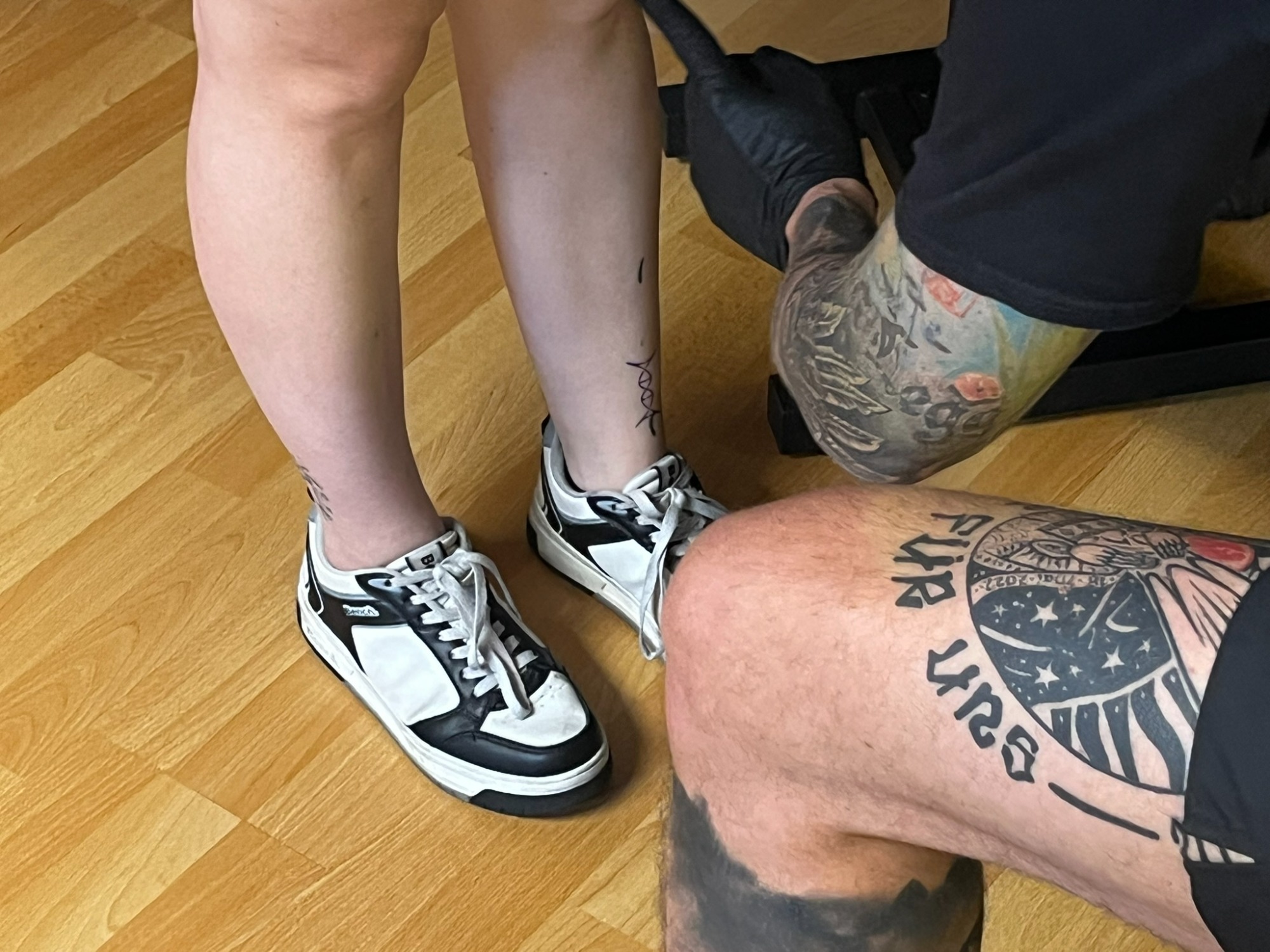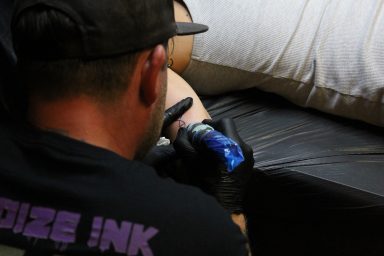Claudi, unterstützt von Lena und Susanne – unsere Orga-Queens, die Besucherströme gelenkt, Fragen beantwortet, Listen geführt und mit beeindruckender Ruhe und Übersicht den Tag zusammengehalten haben. „Wenn Chaos anklopft, macht Claudi einfach nicht auf.“ – sie hat wirklich alles im Griff gehabt und mit Leidenschaft koordiniert. Jörg und Pidi – die mit perfekter Präzision wunderschöne Stencils gesetzt und unserem Tätowierer Daniel zugearbeitet haben. Familie Weis – die sich mit Herzblut um die Typisierungsstation gekümmert und so maßgeblich zu den 19 Registrierungen beigetragen haben. Michael, unser Fotograf – der all die besonderen Augenblicke dieses Tages festgehalten hat und dem Event ein Gesicht gegeben hat. Und nicht zu vergessen: Die letzten Helfer waren erst um 2 Uhr nachts wieder zuhause. Ein langer, intensiver Tag – aber absolut lohnenswert.